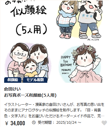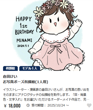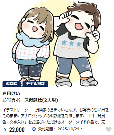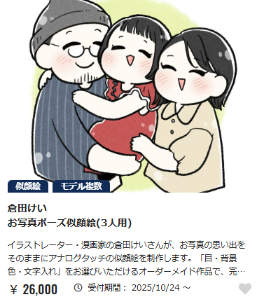 倉田けいさんお写真ポーズ似顔絵プラン一覧