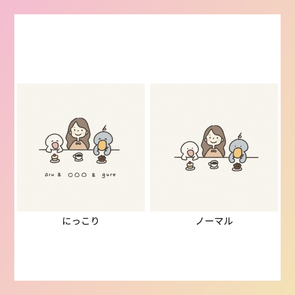 イラストレーターのアルとグレさんがバストアップの似顔絵とキャラクターを一緒に描く作品を制作します。完成データはSNSのアイコンなど個人利用の範囲でご使用いただけます。 <納期>内容の決定後、約30日(前後あり) <構図> ・バストアップ ・サンプル参照(ピースなども対応可) ・人物の前に描かれるアイテムを変更することができます(紅茶 など) <キャラクター> ・人物1名+アルとグレ ・アルとグレの表情は2種類よりいずれかを選択 <背景色> ・アイボリーのみ ※背景にイラスト等の描き込みはできません <文字表記> ・可 ・サンプル参照 <備考> ・当プランでリクエストできるモデルは1人のみ(オプションで変更可) ・動物も1モデルと数えます <オプション> ・モデル追加(1名ごと+4,000円) ※サンプルの人物と横並びで追加する構図となります ご当選後のヒアリングにて下記項目などをご回答いただきます。 ・モデルお写真 ・ご希望のアイテム、文字表記 ●注意事項 ・作品は作者のSNSやKAYTE等で紹介する場合がございます。 ・制作物の著作権は全てクリエイターに帰属します。 ・個人利用以外の商用・二次利用は禁止です。 ●お申込み方法 ユーザー登録後、入力フォームの全項目にご記入ください。 ・作家性を尊重し、修正対応は行っておりません。 ・当落結果はご登録のメールアドレス宛にご連絡いたします。 ・当選者は、メール記載の案内に従いヒアリングフォームにご回答ください。 ・「system@kayte.jp」からのメールを受信できるよう設定をお願いします。 ・申込内容とヒアリング内容を確認後、金額を確定し、クリエイター同意をもって正式受注となります。 ・自動配信メールにて金額をご案内しますので、ご確認のうえお支払いください。 ・お支払い完了後、制作を開始します。 ・提示金額(税込)に加え、購入者手数料10%が発生します。 |