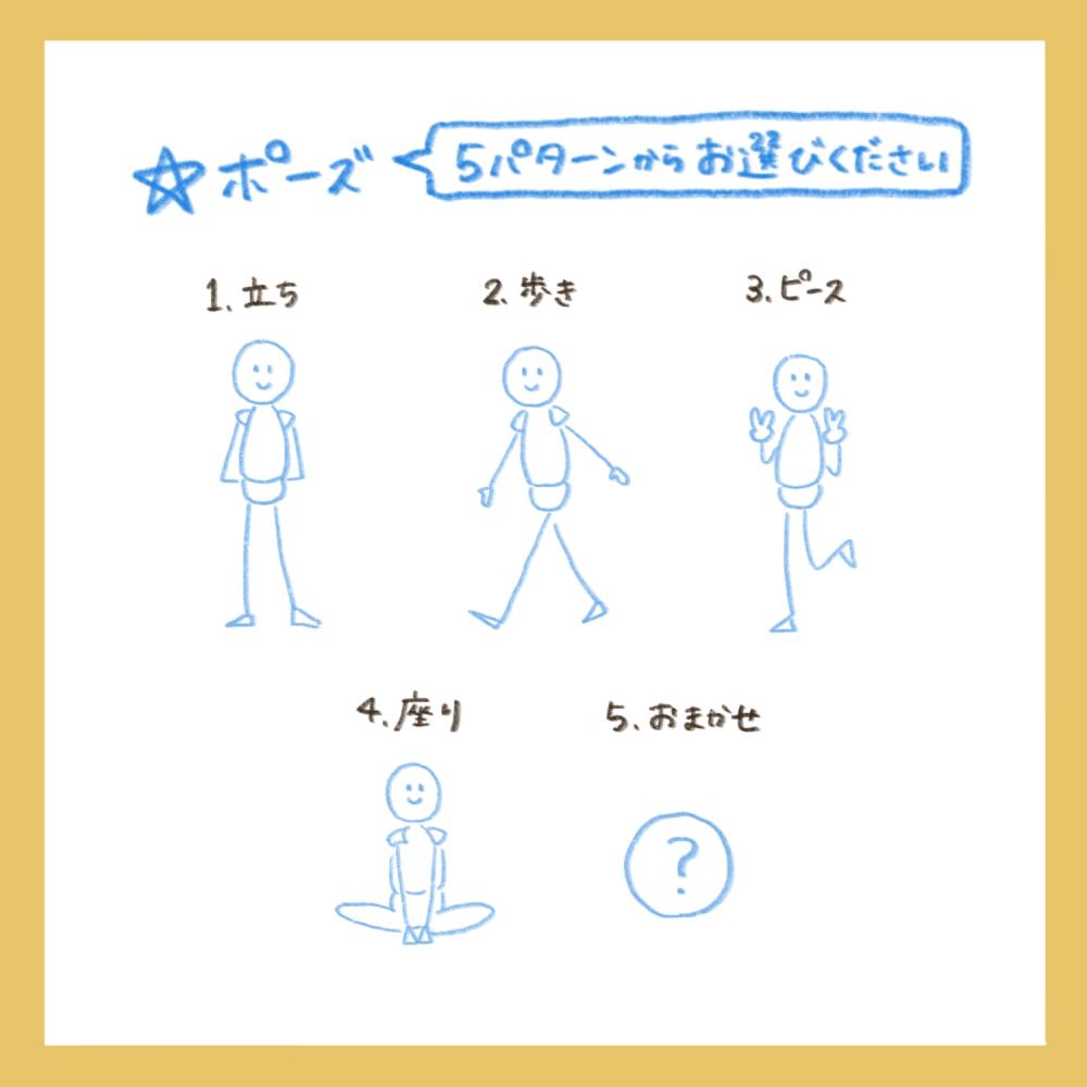 イラストレーターのじろさんがSNSアイコン用の似顔絵作品を制作します。表情やポーズをサンプルよりお選びいただくオーダーメイド作品です。完成データは各SNSアイコン等にご使用いただけます。 <納期>内容の決定後、約60日(前後あり) <構図・表情> ・全身 ・サンプルより選択 <背景>白 <備考> ・当プランでリクエストできるモデルは1人のみです ・背景に文字やイラストを描き込みことはできません ご当選後のヒアリングにて下記項目などをご回答いただきます。 ・モデルお写真(お顔や全身がわかる内容) ※お写真をお送りいただくことが難しい場合、文章で説明していただくことも可能です ・ご希望のポーズ、表情(サンプルより選択) |