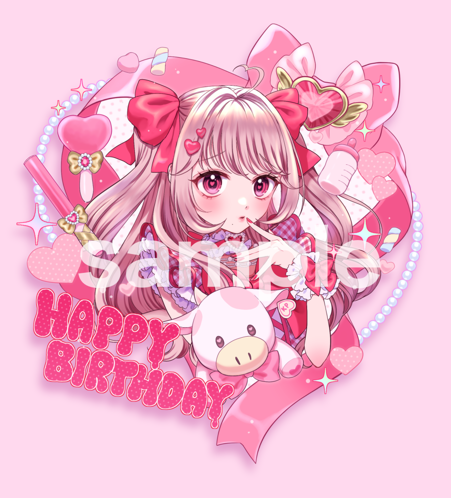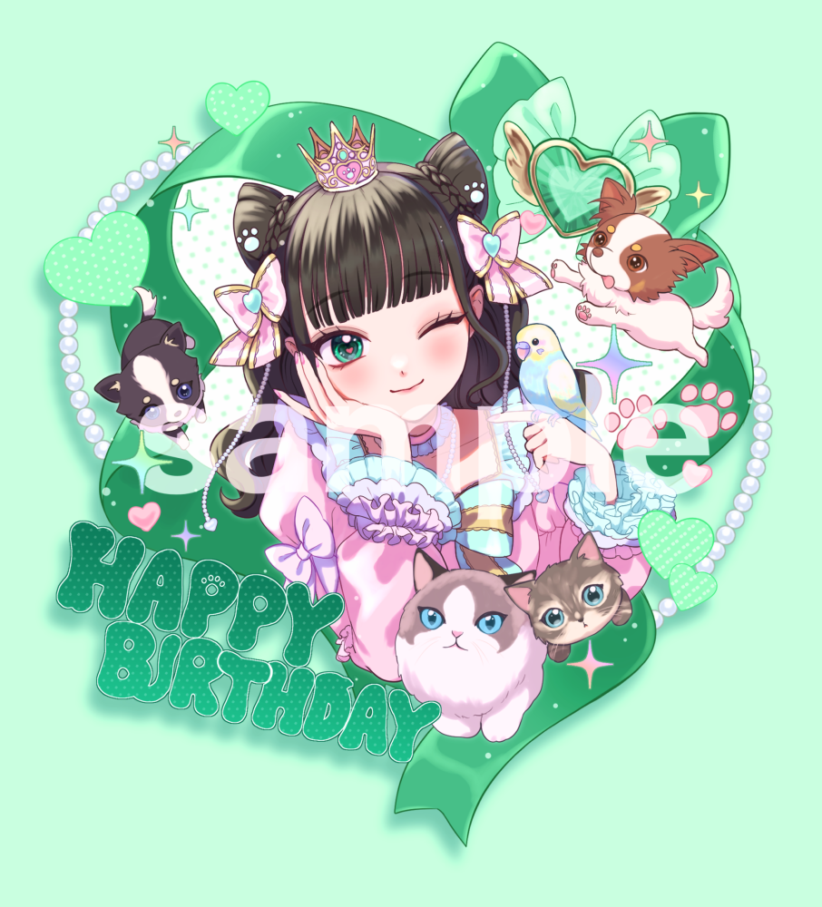 イラストレーターの兎星しずかさんが、お写真を参考にアイドルのような生誕イラストを制作します。完成データは個人利用の範囲でご利用ください。 <納期>内容の決定後、約30日(前後あり) <納品> ・計2種類 ・背景カラーあり+なし <構図> ・バストアップ ・背景のリボンデザイン、「HAPPY BIRTHDAY」は固定 ※髪型・髪色・衣装・ポーズ・表情・入れて欲しいモチーフ(ケーキなど)の希望がある場合、写真提供にてリクエスト可能です。 ※動物は2匹まで基本料金内で描けます。3匹目以降は1匹毎に+1,000円のオプションとなります。 <メインカラー>サンプルより選択(背景色や瞳などに適用) <文字表記>お名前のみ可 <備考> ・当プランでリクエストできるモデルはお一人のみです ・作品データを利用した販売は禁止です。印刷可能なアイテムはTシャツのみ。個人利用として、自分やご友人だけの生誕祭をお楽しみください。 ヒアリングにて下記項目などをご回答いただきます。 ・モデル写真 ・髪型や髪色など構図希望の参考となる写真 ・メインカラー、お名前 |