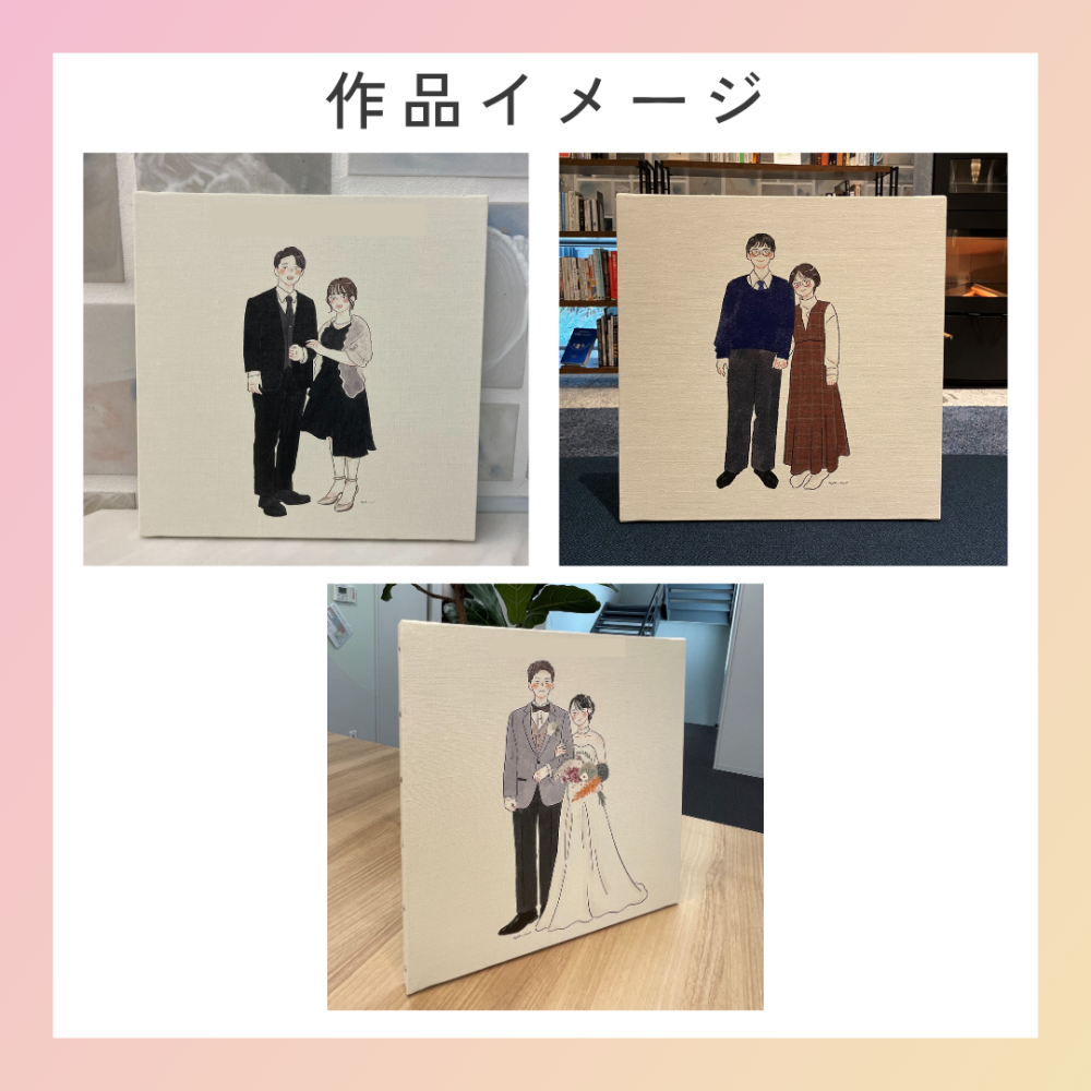 イラストレーターのaya.mさんがお写真を元に描き下ろしの全身イラストを制作します。ご希望の表情をお選びできます(表情お任せ可)。イラストは作品データとキャンバスプリントの2種をお届けで、作品データは正方形・長方形のサイズよりお選びできます。完成した作品は個人利用の範囲でご使用いただけます。 【納期】内容決定後、約60日程度 【提供形式】 ・作品データ+キャンバスの2種類 ・データ…JPGデータ ・キャンバス…S4号サイズ(約タテ333×ヨコ333×厚さ18mm) ※キャンバス地は生成りのように温かみのあるナチュラルテイストな風合い。お使いのモニター設定、お部屋の照明等により実際の商品と色味が異なる場合があります。 ※TOPPAN株式会社様の国内印刷工場でプリントします ※印刷範囲は正面部分です 【表情】サンプルから選択(お任せも可) 【文字表記】名前のみ可 【備考】 ・当プランのモデルは2名様限定です ・小学生未満のお子様1名様または動物に限り追加が可能(無料) ・オプション 待ち受けサイズ(+1,000円) <オプション 待ち受けサイズ追加> ・ヒアリングにてご使用機種をご回答いただきます ご当選後のヒアリングで以下をご提供いただきます ・参考写真(ポーズ・服装等) ・ご希望の表情(サンプルより選択) |