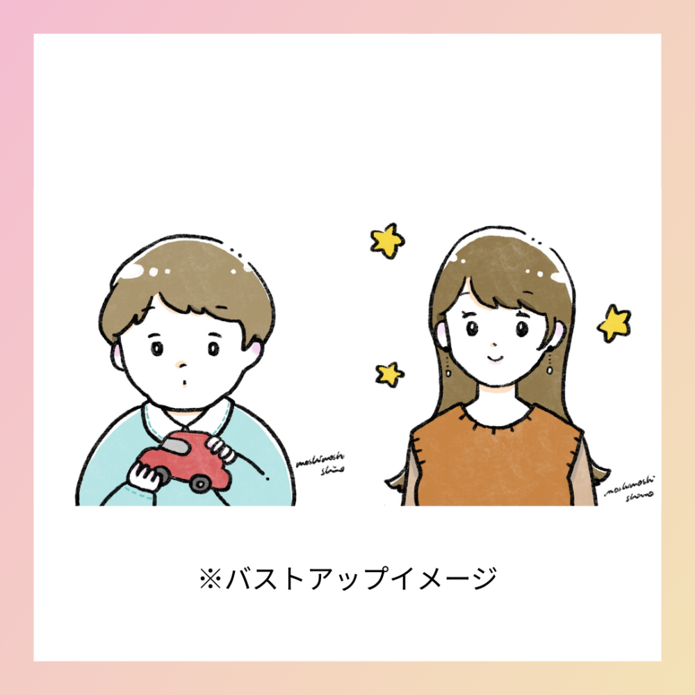 イラストレーターのもしもししもさんがバストアップの似顔絵作品を制作します。完成データはSNSのアイコンや待ち受けなど個人利用の範囲でご使用いただけます。 <納期>内容の決定後、約60日(前後あり) <ポーズ> ・バストアップ ・お写真通りまたは希望するポーズをヒアリングにてご回答いただけます <背景色> ・白 ※イラストの描き込み等はできません <文字表記>可 <簡単なモチーフ>スマートフォンや花などの簡単なモチーフを1つ描けます <備考> ・当プランでリクエストできるモデルは1人のみ(オプションで変更可) ・動物も1モデルと数えます <オプション>モデル追加(1名ごと+10,000円) ご当選後のヒアリングにて下記項目などをご回答いただきます。 ・モデルお写真 ・ご希望のモチーフ、文字表記 |